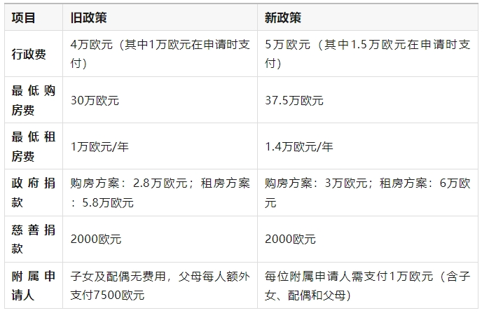 3、附属申请人费用:新政要求对每位附属申请人(包括子女、配偶和父母)收取1万欧元的额外费用。