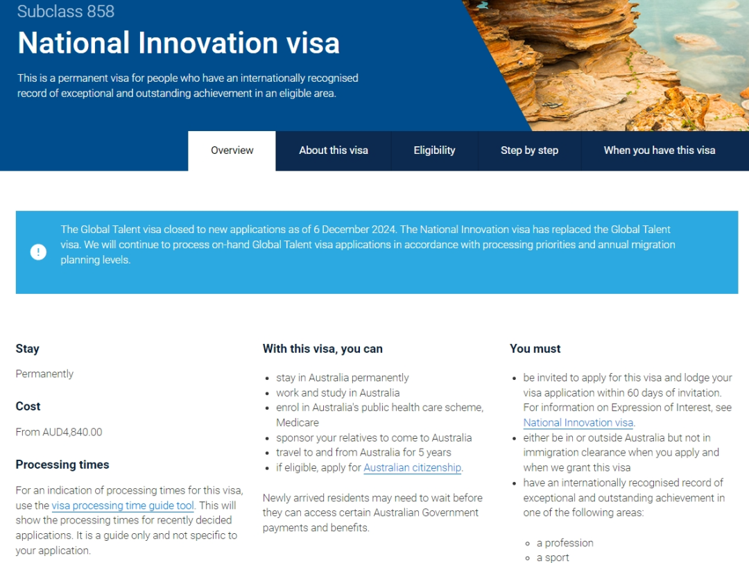 2024年12月7日,澳洲政府正式官宣了全新的国家创新NIV签证申请要求,标志着投资移民政策的重大升级。自2024年12月6日起,备受瞩目的澳洲GTI全球杰出人才项目正式关闭,不再接受新的申请。而从2024年12月7日起,全球杰出人才可以转向递交NIV签证申请,开启移民澳洲的新篇章。