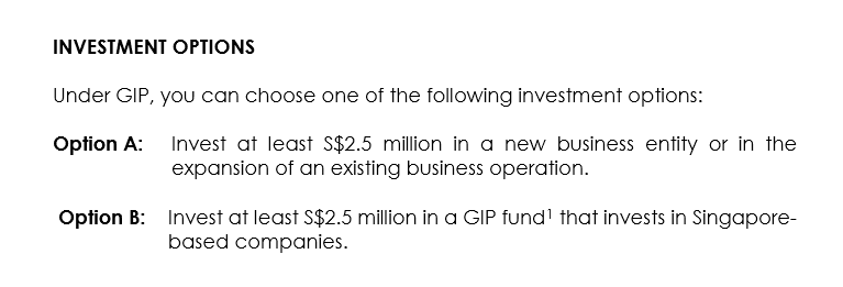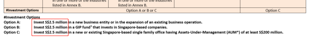 方案 B:投资至少250万新币于新加坡政府指定的基金公司。