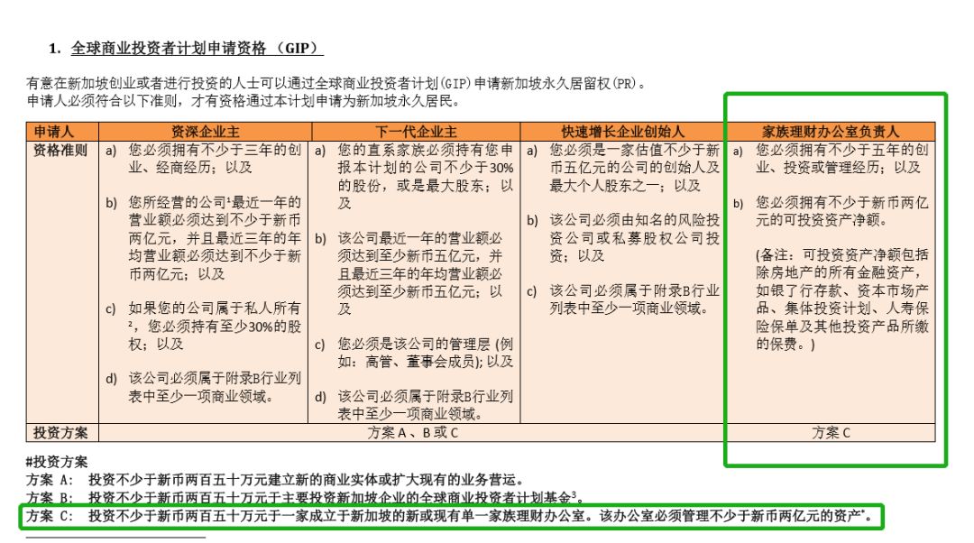 企业家可通过这一计划为全家申请新加坡永久居民,也就是绿卡。这是目前唯一一项可直接获得永久居民身份的移民方式。