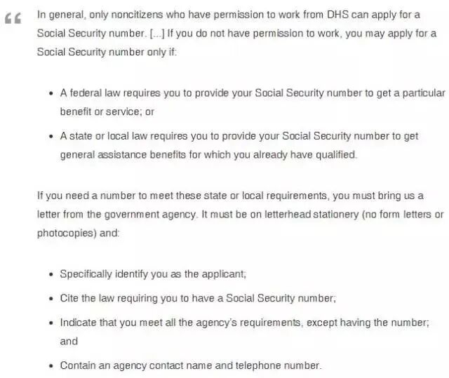 根据社保局 SSA 的规定,只有可以在美国合法工作的人才能申请 SSN,SSA 官网原文如下: