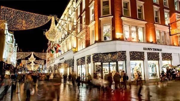 格拉夫顿街是都柏林的高档步行街购物街,晚上的时候头顶装饰着许多的灯形成的温柔曲线,逐步揭开了街景。那里有很多不错的商店、 很多咖啡馆和餐厅。对于去南端的圣斯蒂芬绿地和北部的圣三一学院漫步来说非常方便。如果高档购物中心,繁华地段,和逛街都是你所喜欢的,那么格拉夫顿街一定要去。街头艺人的表演取悦了观众,同时也让这条街道更有艺术氛围。