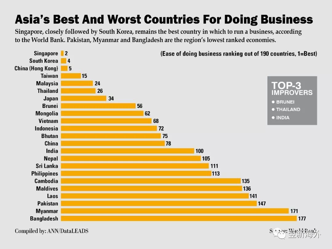 2018年,在世界银行调查的190个国家中,新加坡被评为全球第二、亚洲第一最佳经商国家。