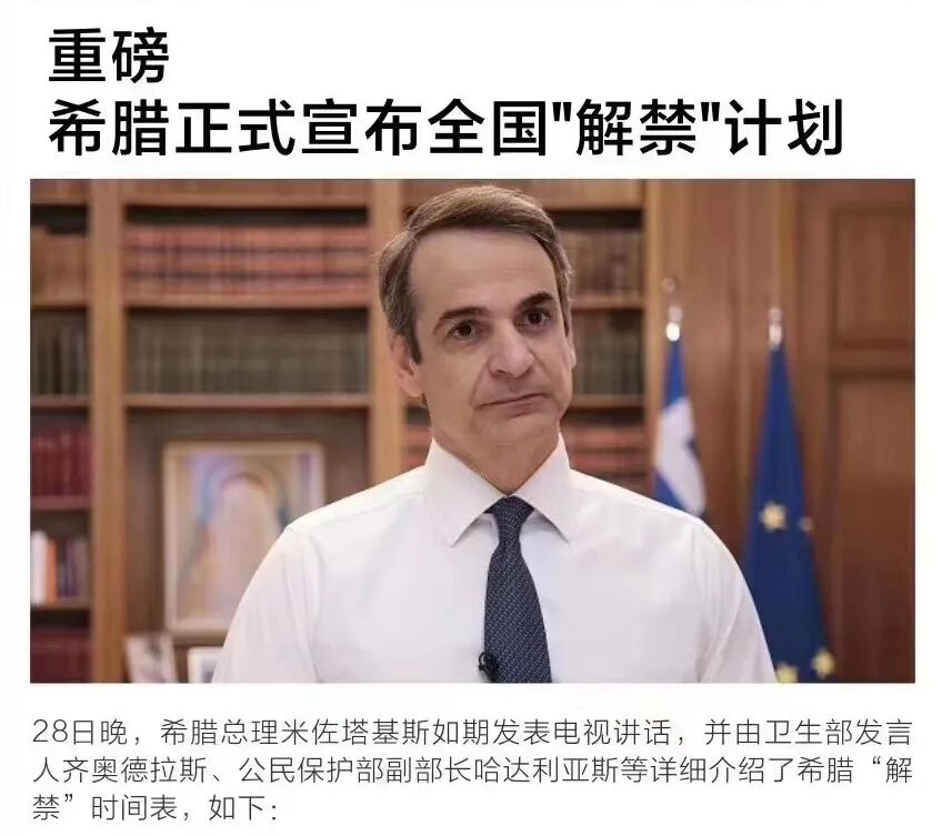 希腊总理米佐塔基斯如期在当地4月28日傍晚发表全国电视讲话,宣布放松各项防疫限制措施的确切时间表。自从2月底希腊出现新冠疫情以来,米佐塔基斯已经多次发表全国讲话。