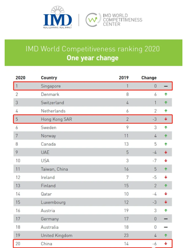 近日瑞士洛桑管理学院(IMD)《2020全球竞争力报告》发布,新加坡再度获选为全球最具竞争力经济体,连续两年蝉联第一。