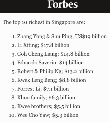 新加坡2020福布斯富豪榜!中国新移民斩获前2名!