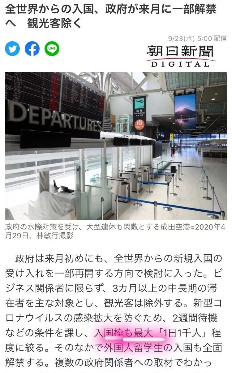 9月23日,日本政府宣布:10月初考虑恢复世界各国中长期居民及商务人士(旅客以外)入境日本。