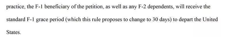 另外,F类签证的Grace Period 将从60天缩减至30天。