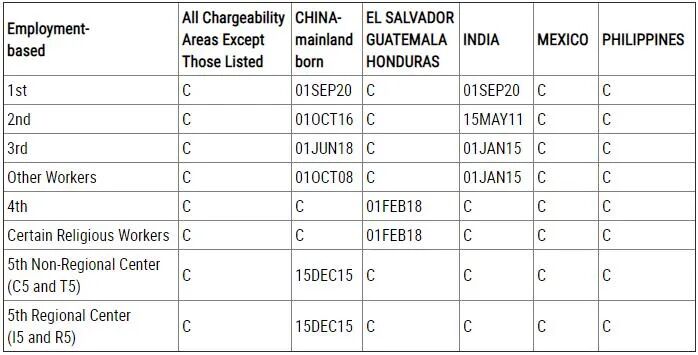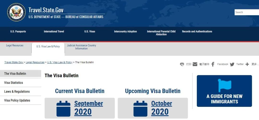 美国国务院签证办公室公布了2020年10月的移民排期签证公告。
