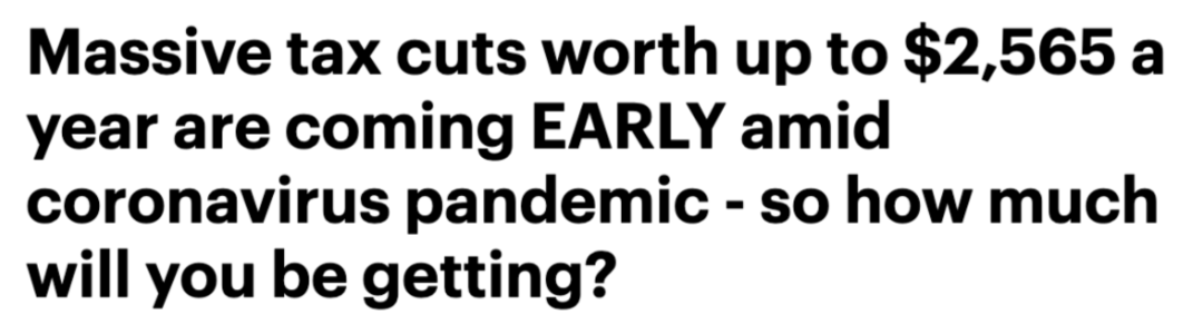 因为疫情的缘故,价值高达每年$ 2,565的大规模减税措施即将提早生效。”