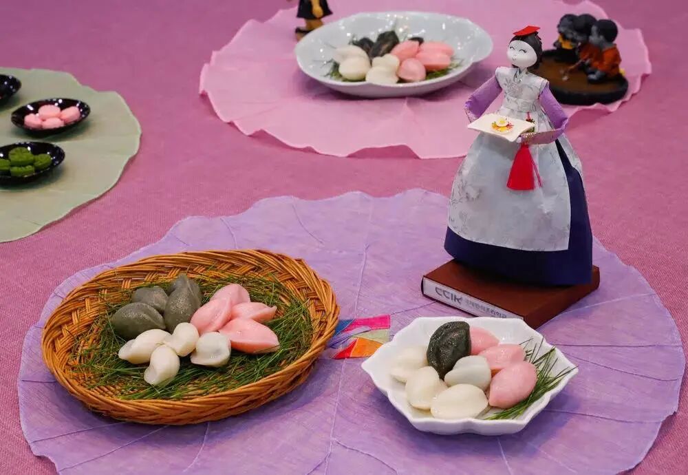 半月形的松饼用米粉做皮,以芝麻、松仁、栗子等为馅,放在铺满松针的蒸屉上蒸熟,象征着收获。在如今的韩国,人们仍保留着秋夕吃松饼的习俗。