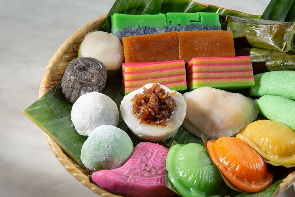 娘惹糕由糯米、椰浆、香料等原料制成,口感软糯,种类及口味繁多。糕点取用蝶豆花、班兰叶等植物的汁液上色,形成艳丽的色彩,是备受当地人欢迎的美食。