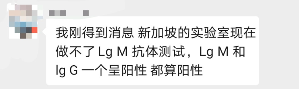 说法二:网传新加坡做不了lgM,要用更严格的lgG抗体检测替代?
