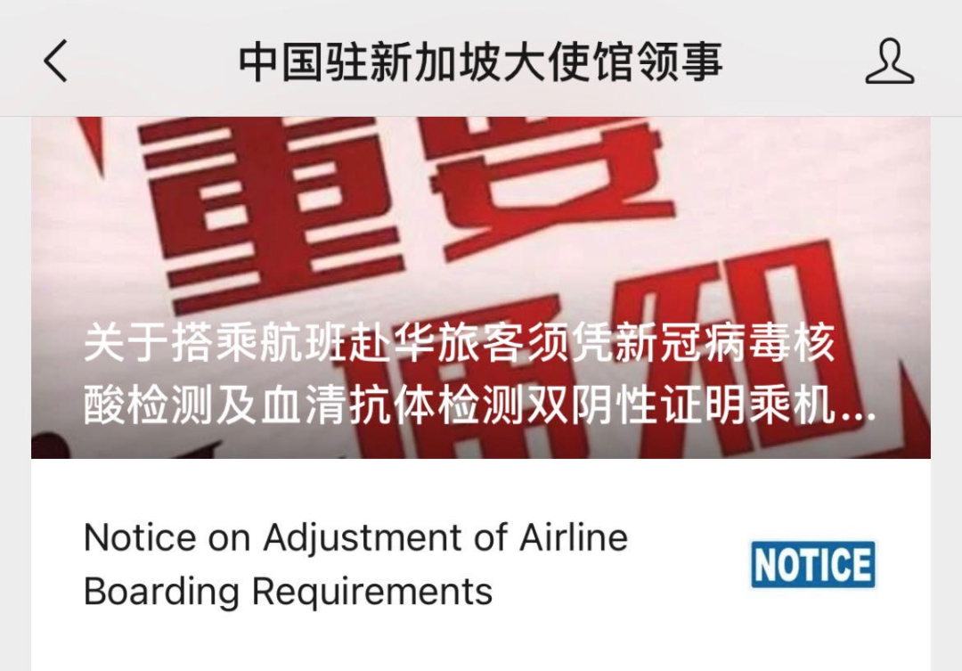 重磅!中国驻新大使馆:11月8日起,从新加坡飞中国需双阴证明!