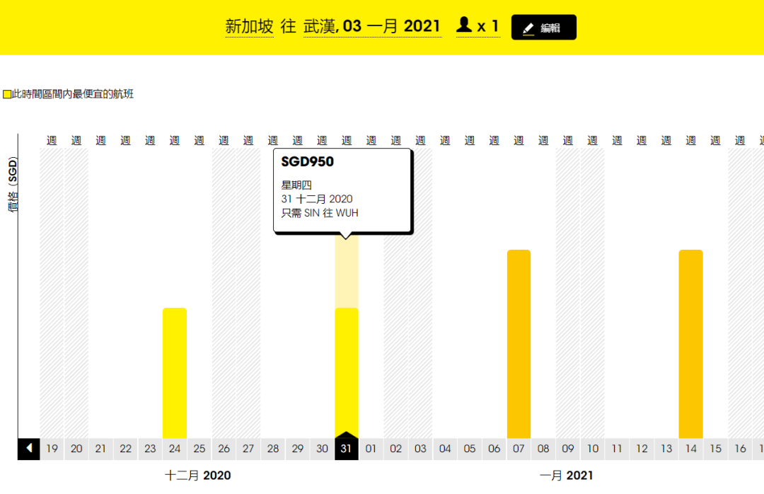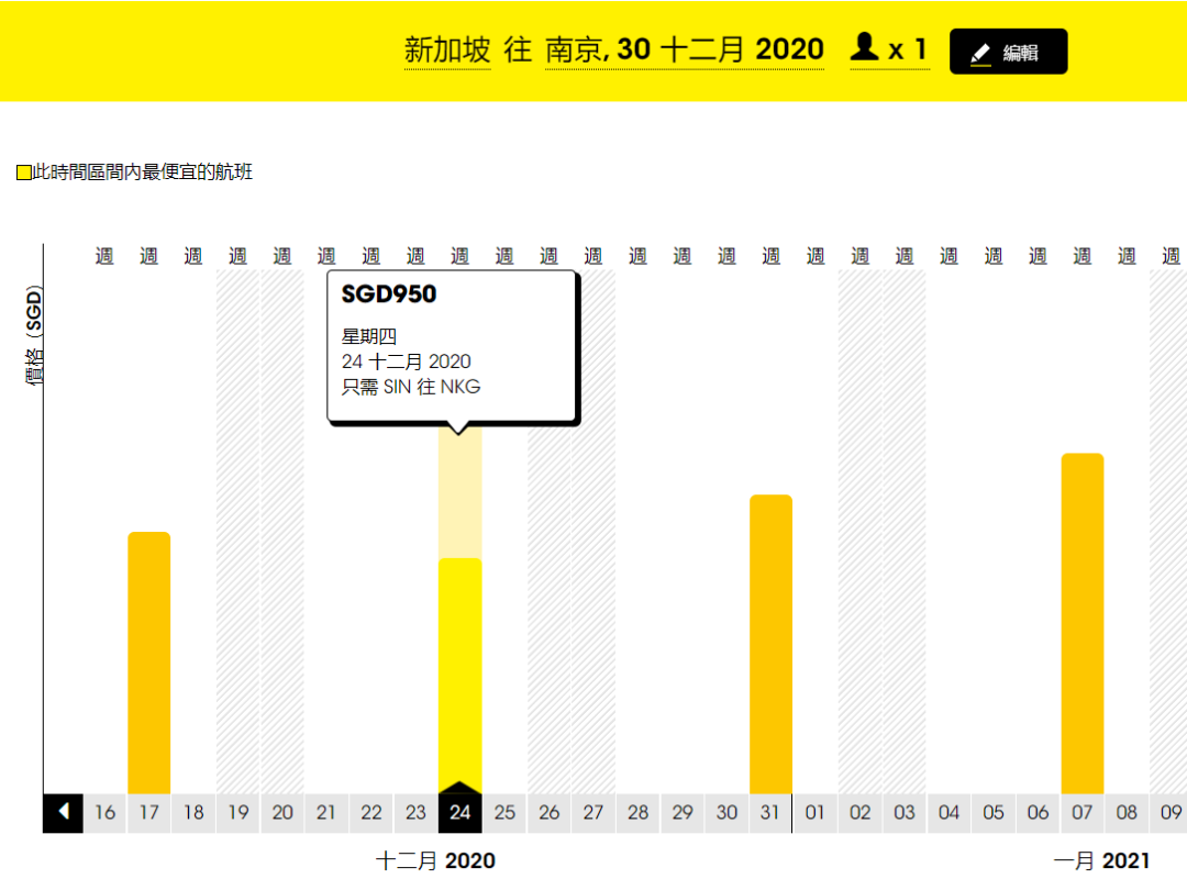 单程经济舱低至S$950