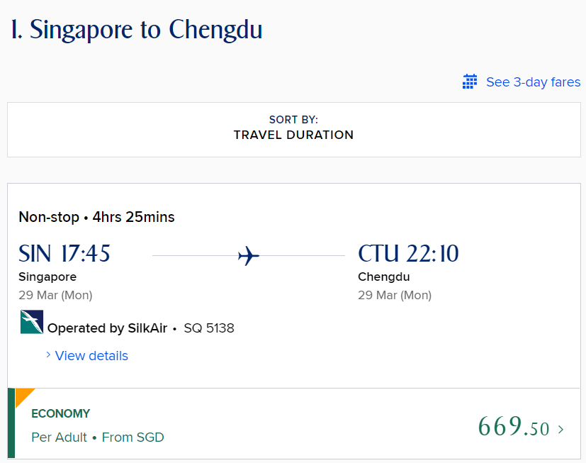 新加坡航空 3月29日