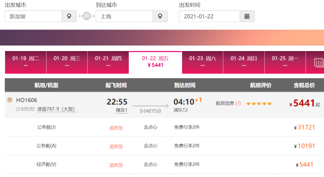 单程经济舱低至?5441