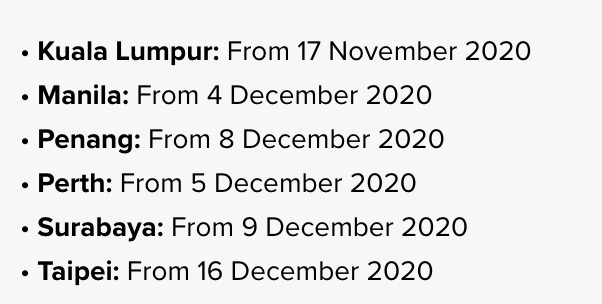 以下是酷航的最新航班列表
