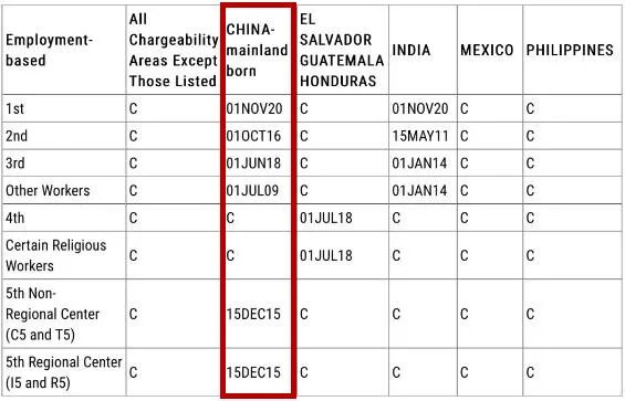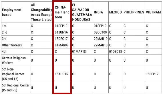 EB-1:前进153天,EB-2:前进31天,EB-3:前进44天,非技术劳工:前进14天,EB-4:无需排期,无变化,EB-5(非区域性中心):无变化,EB-5(区域性中心):无变化。