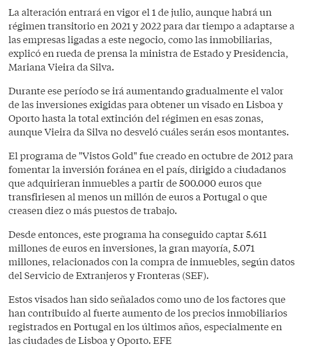 新政在2021-2022年将有一个过渡时期,以适应在此期间减少投资带来的经济影响。具体细节仍待法案公布,但真的是最后一批可以享受葡萄牙购房移民政策的了。所以还在观望的客户,要抓紧时间和机会了,错过就不会再有!
