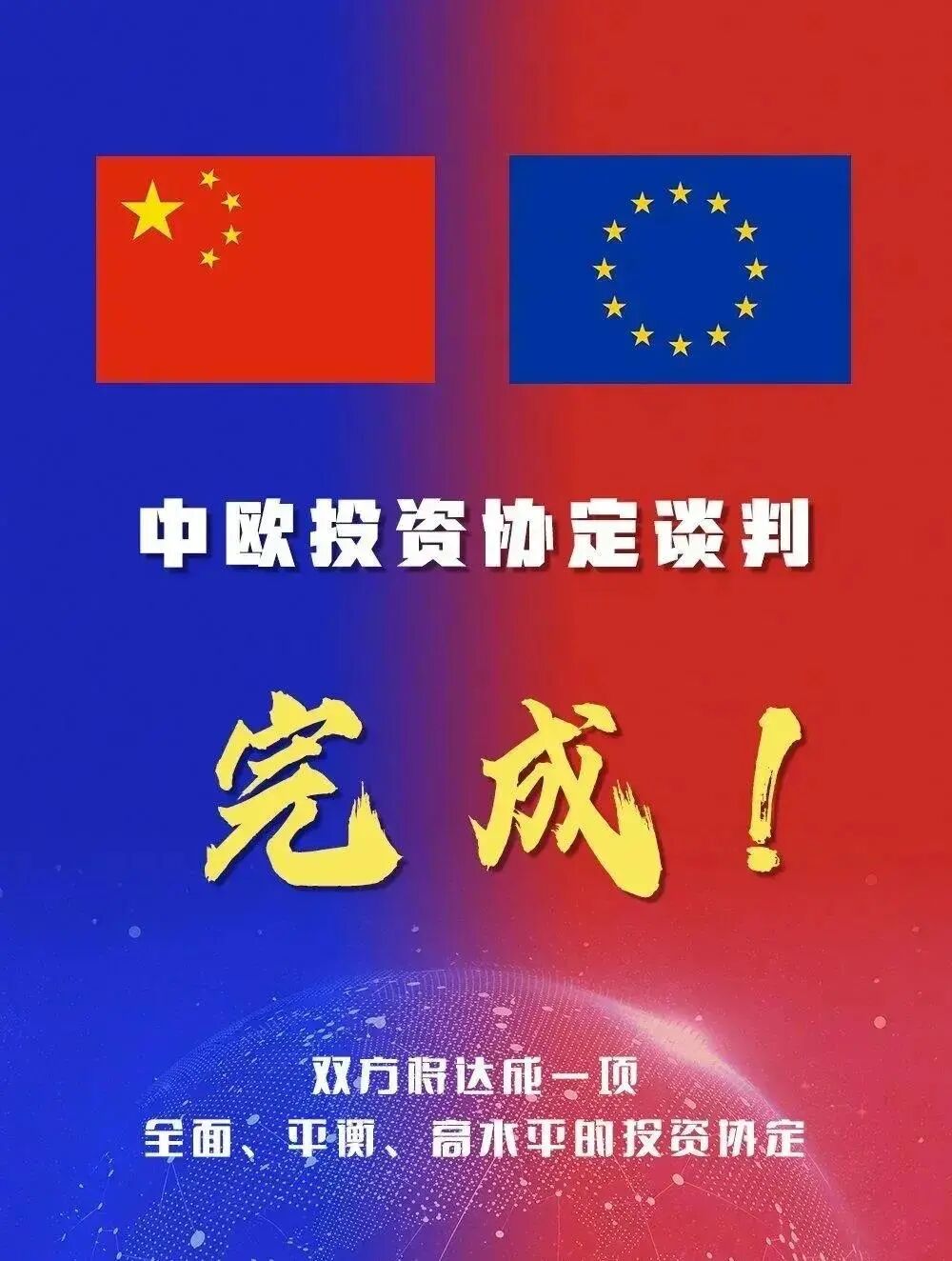 据公开资料显示,中欧全面投资协议 ( EU-China Comprehensive Agreement on Investment)旨在为中欧投资关系建立一个统一的法律框架,取代中国和欧盟里26个成员国之间的现有双边投资条约。