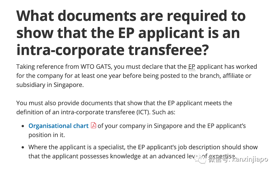 ICT是符合世界贸易组织标准下的一项工作准证,要求申请人必须在该公司工作满一年以上,并在申请时提交公司的组织结构图。