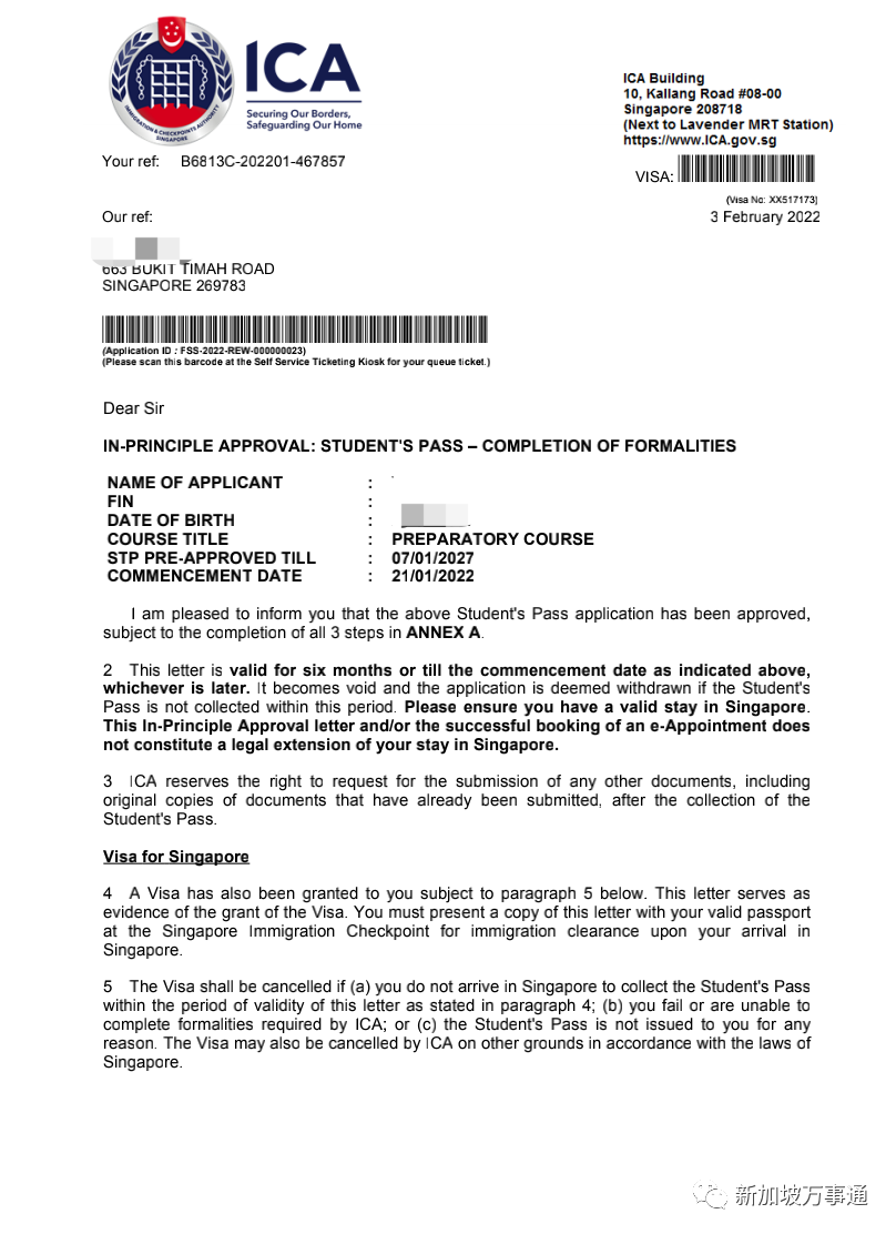 原则批准信持有者,即在新加坡申请学生准证成功后,移民局会向其发布邮件形式的IPA信件。IPA信则是移民局批准入境的证明,也就是所谓的签证!
