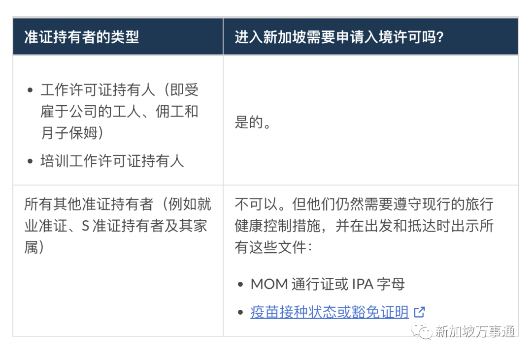 目前,仅有WP准证持有者仍需在2月22日及以后进行入境申请,其他准证持有者只需持有有效准证和符合规定的疫苗接种证明即可。