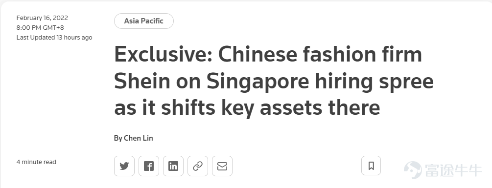SHEIN表示,目前正在扩大新加坡办事处,以支持该公司在东南亚市场的成长。不过,对于是否已经将法律和行政总部迁移至新加坡,SHEIN仅回应,在中国、新加坡和美国等主要市场都设有业务中心。