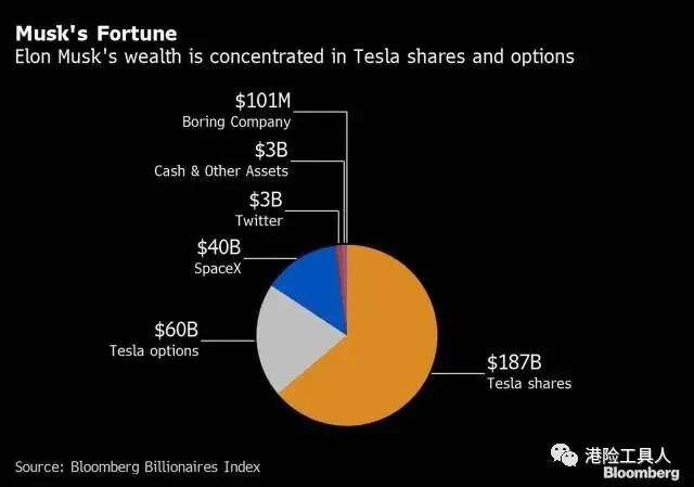 而在投资上,马斯克主要通过他的家族办公室——Excession 进行配置。马斯克除了投资自己的公司,SpaceX、特斯拉、Solar City、基础设施和隧道公司 The Boring Company等,他不投资任何东西。此外,他不拥有任何其他公共证券,除了特斯拉。