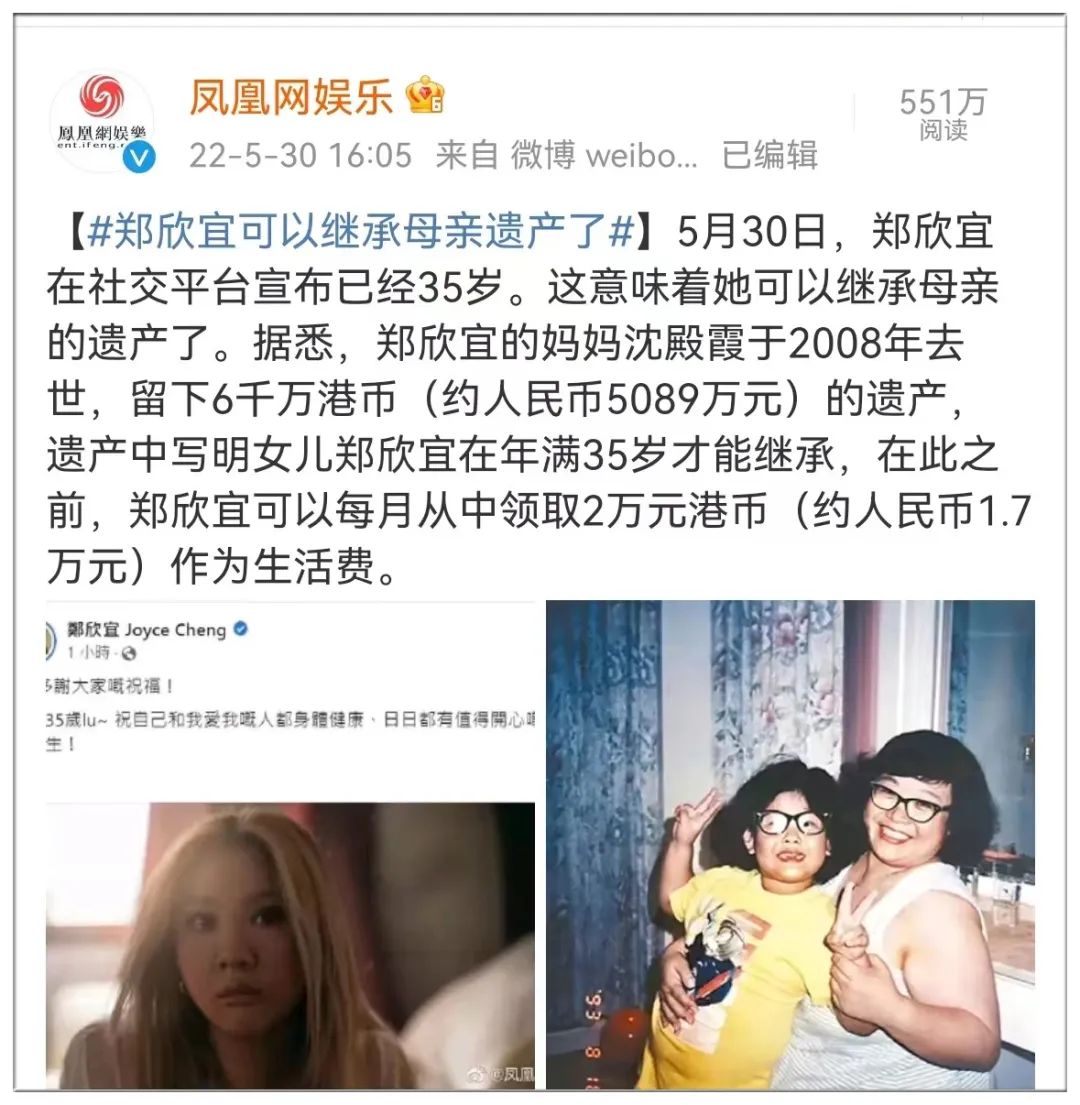 郑欣宜正式继承母亲沈殿霞6000万遗产,家族信托让母爱延续!