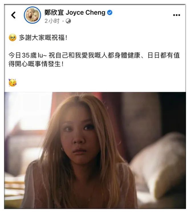 5月30日是郑欣宜35岁生日,她在社交平台上发布了一条消息来庆祝她的生日。她说:“祝自己还有爱我和我爱的人都身体健康,日日都有值得开心的事情发生。”