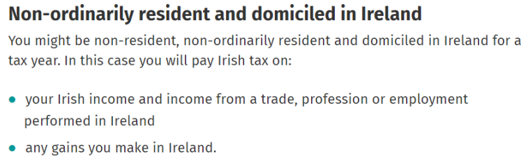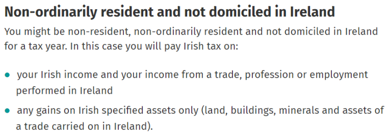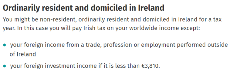 如果某人不是爱尔兰的税务居民,但属于爱尔兰普通税务居民且有爱尔兰居籍,那么需要全球征税,但以下情况除外: