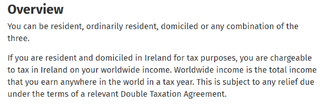 首先来规范并确认三个概念,税务居民,普通税务居民,居籍。如果成为了爱尔兰的税务居民,同时也属于爱尔兰居籍,那么需要对爱尔兰的收入和全球范围内的收入征税。