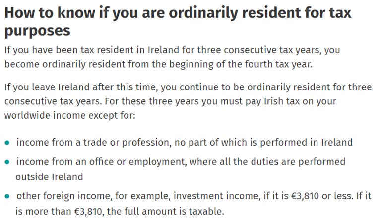 成为普通税务居民后,即便离开爱尔兰,不在爱尔兰居住了,在此之后的连续三个税务年度内,仍然是爱尔兰的普通税务居民,需要全球征税,但以下情况除外: