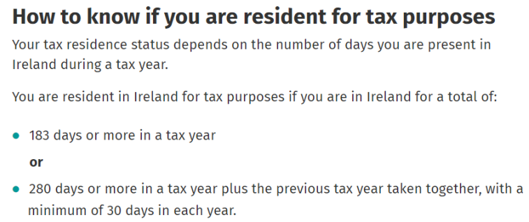 判断是否属于爱尔兰的税务居民,主要依据是在某一税务年度期间,在爱尔兰居住的天数。如果在爱尔兰的居住天数超过183天,或在两个连续税务年度累计居住天数超过280天(其中一年最少居住30天),就可以判断成为爱尔兰的税务居民了。