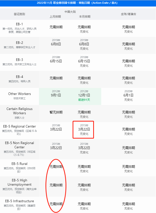 常规EB-5直投和区域中心项目,本月排期停留在2015年3月22日;