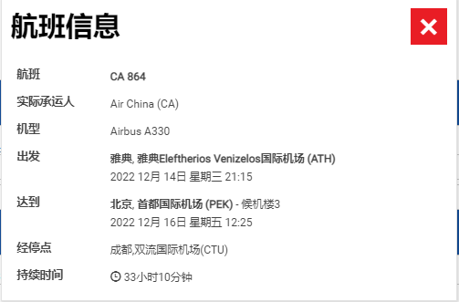 11月24日,据中国国际航空公司官网显示,将于2022年12月22日开通中国上海往返希腊雅典直飞航线,这也是首条连接上海至雅典的直飞航线。