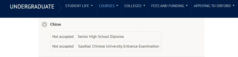 对于中国高中毕业生:牛津大学不认可中国高中毕业成绩和高考成绩,需要提供更多额外的辅助材料才能进入申请(如雅思、预科成绩等)。