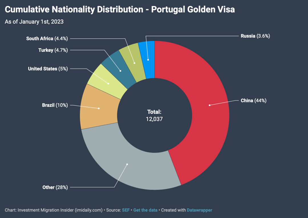 中国人在项目中占据了历史统治地位,累计来看依旧是该项目最大的投资者团体,拿走了其中44%的黄金签证配额。