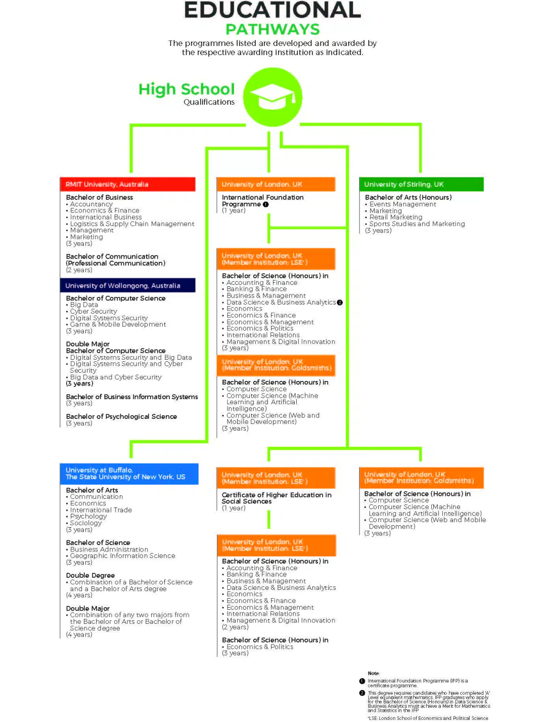 IFY预科完成后,可以利用预科成绩,申请与SIM合作的英国、澳洲、美国的大学,如澳洲皇家墨尔本理工,英国伯明翰大学等80多个知名院校的联合课程。