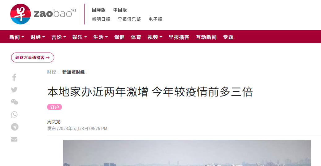 想了解更多《新加坡家办近两年激增,今年较疫情前多三倍!》中的内容。