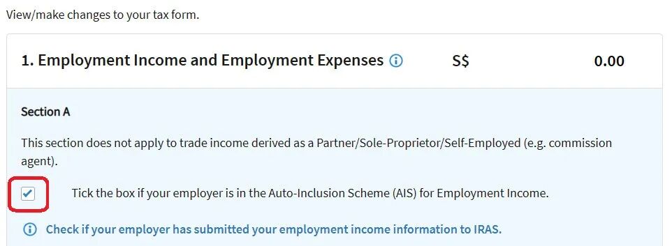 第一项为就业收入与支出,这个不管是大公司还是小公司,一般都是公司财务帮忙申报的,直接在Section A里面勾选小方框即可。