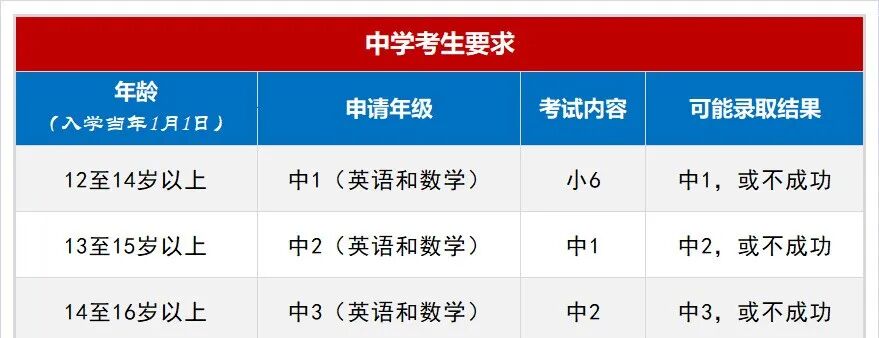 如果国际学生没有顺利通过当年的AEIS考试或错过考试时间,也可以报名参加第二年2月份的新加坡政府中小学国际学生统一入学的补充考试S-AEIS考试。4月到5月公布录取结果,通过考试的学生将在第二年的6月份插班入学。(插班入学的学生无需再读前半年的课程,只需要跟着学校的教学进度进行即可)