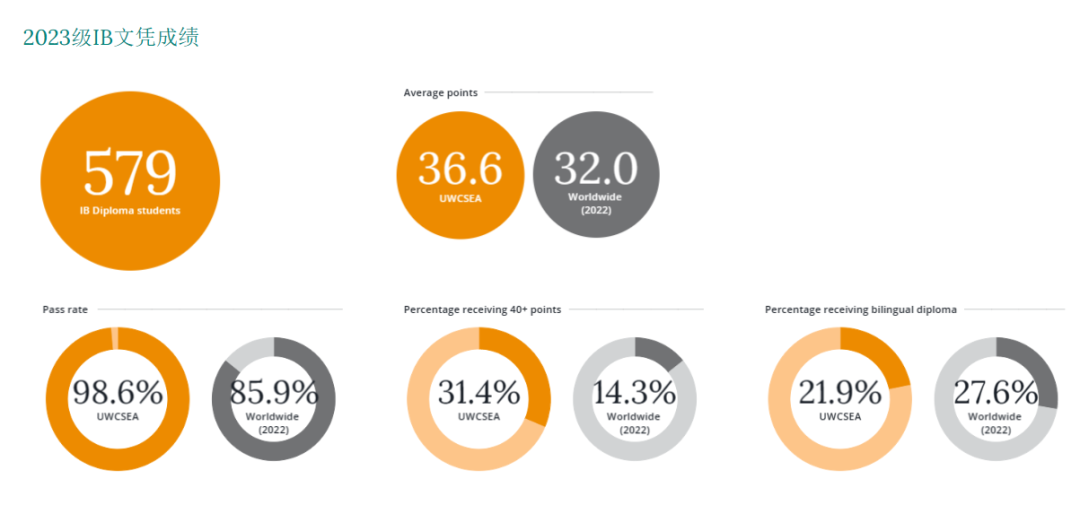 东南亚世界联合书院2023年IB平均成绩36.6,其中31.4%的学生取得了40分及以上的成绩,70.1%取得了35分以上的成绩,90.1%取得了30分及以上的成绩,21.9%的学生获得双语文凭。