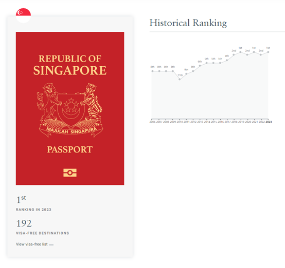根据最新的亨利指数,日本在连续五年位居榜首后,已被新加坡取代,不再拥有世界上最强的护照。现时,使用新加坡的护照可以免签证便能够前往全球 227 个地方中的 192 个。