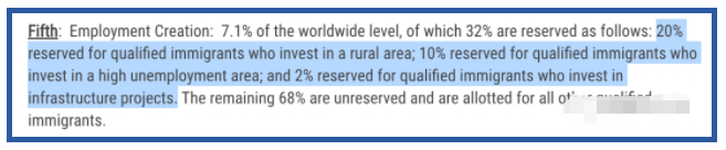 虽然新法带来了无排期的好时光,但投资移民的绿卡名额依然有限。每年可分配的绿卡名额约为10,000张,而Set aside类别占这一名额的32%,其中有20%分配给乡村地区,10%分配给高失业区,还有2%分配给符合条件的基建项目。随着新项目的增加和投资人的增多,这些名额可能会很快被抢占一空,导致Set aside类别也出现排期。
