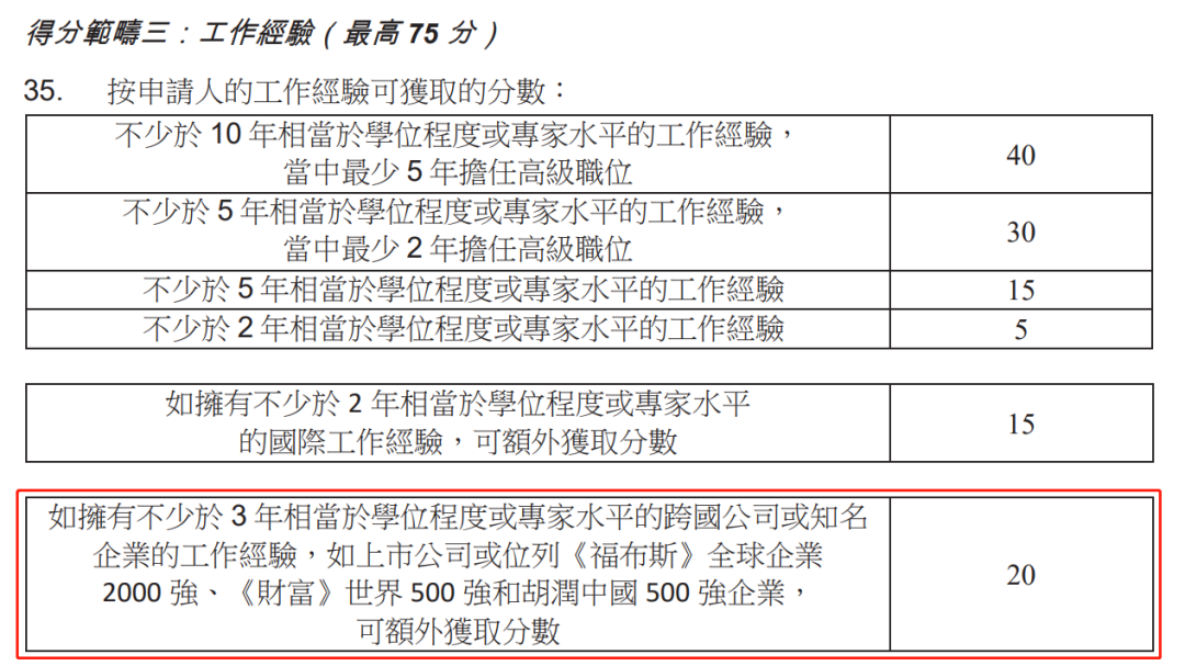 高级职位的工作经验,可以简单理解为高管工作经验。如果能够加上高管分,申请香港优才计划的优势会增大很多。