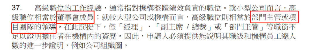 所以加分的关键在于能否被认定为“高级职位”。入境处对于“高级职位”也有明确的规定: