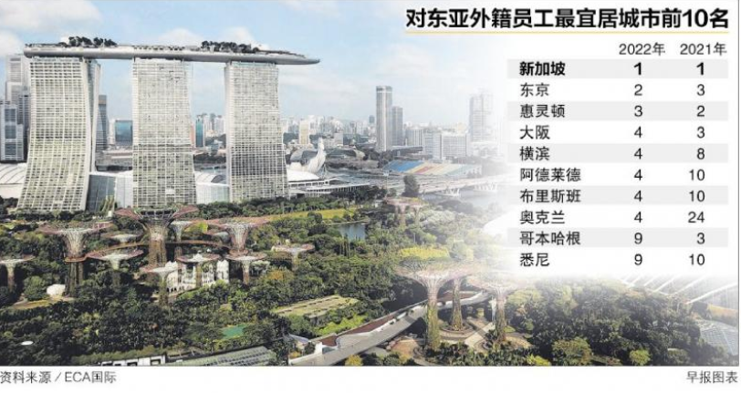 根据近月经济学人信息部公布的2023年全球宜居城市指数显示,新加坡排名34,总得分为92.1,较去年上升了三个位置。另外,根据人力资源顾问公司ECA国际今年2月发布的“地点评级”调查结果,新加坡连续17年成为东亚外籍员工最宜居地点。